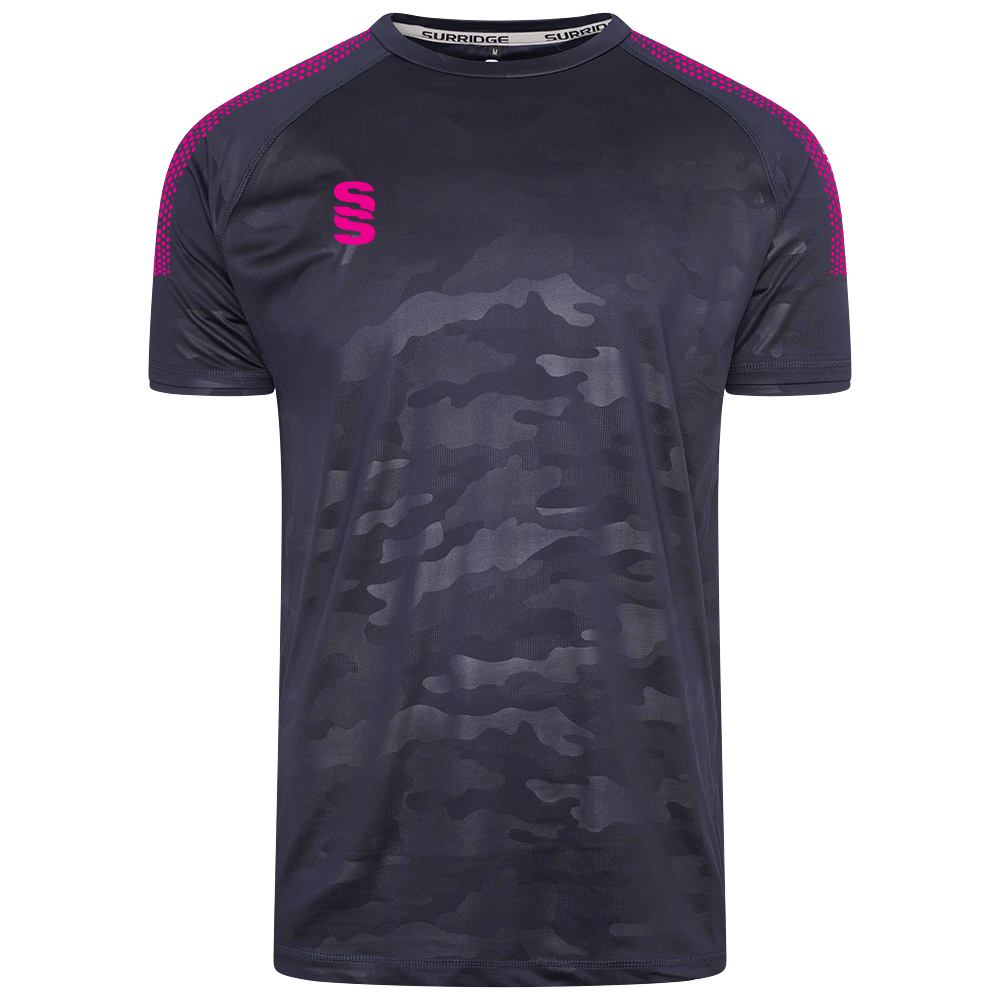 The Camo T-shirt is made of performance interlock fabric with a contoured under-arm side panel. The forward side seam detail has flat-lock stitching for an ultimate smooth, cool and comfortable feel. It features a crew neck fabric collar and raglan seam sleeve. To finish, our Surridge SS logo is situated on the right chest.